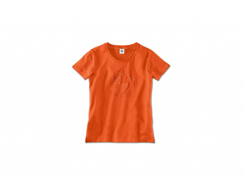 - Dámské módní tričko s lesklým saténovým logem BMW v hedvábném hladkém žerzejovém provedení