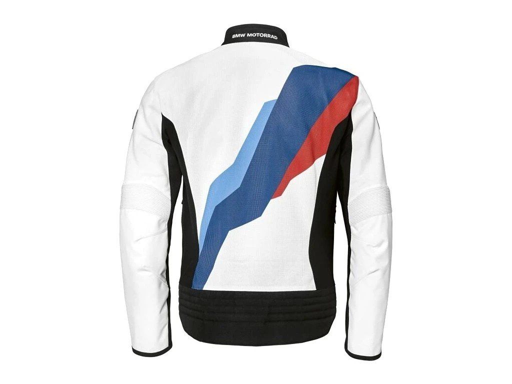 - Výrazný tisk v barvách M trikolóry, logo M a logo BMW na rukávech podtrhují sportovní charakter. Design doplňuje velký vertikální nápis BMW Motorrad na přední straně. Chrániče SC 1/KA na ramenou a loktech poskytují certifikovanou ochranu dle normy EN 17092 (třída A). Bunda je připravena na dovybavení páteřovým chráničem NP LR, pro který je integrována kapsa.